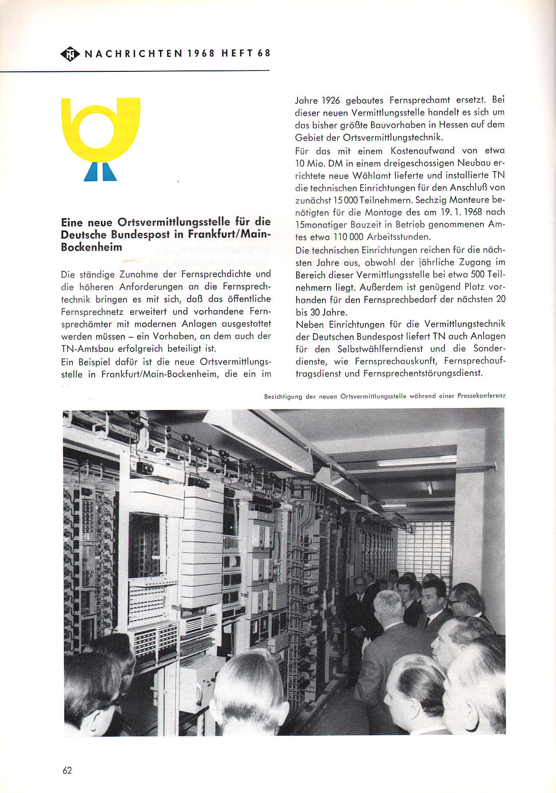 1968 Neue Ortsvermittlungsstelle für die Deutsche Bundespost in Frankfurt a. M.