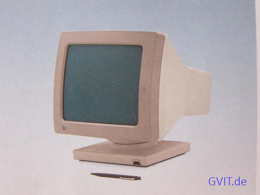 gibt es als 12“, 15“ und 15“ Monochrom- und einen Farb-Bildschirm. Die Bildschirme sind dreh- und schwenkbar und haben eine entspiegelte Frontscheibe. Die Informationen werden auf 29 Zeilen á 80 Zeichen in grüner Farbgebung dargestellt. Der Farbschirm kann aus einer Palette von 64 Farben acht Farben gleichzeitig darstellen. Zur Strukturierung der Informationen stehen Video-Attribute wie: Invertieren, Unterstreichen, halb-hell, doppelt breit, doppelte Helligkeit und Überlagern zur Verfügung.