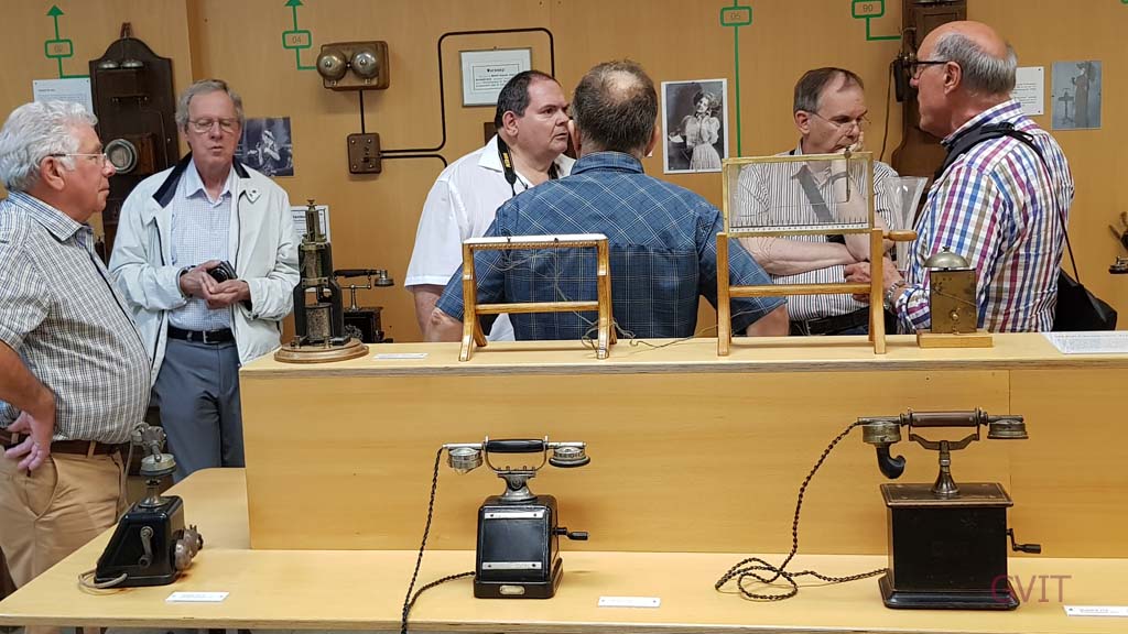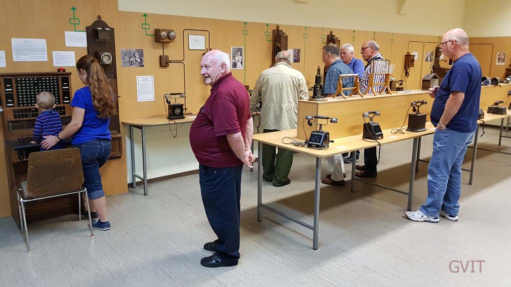 Die in zweiter Generation geführte Sammlung zeigt die Entwicklungs-Geschichte des Telefons mit allen beteiligten Personen von der Telegraphie bis zum vergoldeten TN-T4-Apparat, mit technischen Erläuterungen aller Epochen und funktionsfähigen Exponaten. Über die zeitgenössischen Apparate können an den Wählsystemen vom Besucher Gespräche aufgebaut und der Verbindungsaufbau beobachtet werden. Herr Warth sammelt nicht nur Hardware, (derzeit xy Apparate, xy Anlagen) sondern auch die dazu gehörende Literatur (derzeit xy Bücher). Der älteste Apparat stammt aus 18xy, eine Postkutsche von 18xy und dazu kam unser Gastgeschenk: ein verchromter T-Apparat von TN (Fertigung 19xy). Aus den von unserem Geschichtsverein GVIT dem Deutschen Telefon-Museum zur Verfügung gestellten 490 Mikrofilm-Rollen TN-Stromlaufpläne, Schalt,-Montagezeichnungen, Fertigungsunterlagen und Prüfpläne hat Herr Warth bis heute bereits über 3.300 Fallwähler-Dokumente gescannt und in elektronische Dateien konvertiert, siehe Liste. Vielen Dank dafür und auch an Familie Warth für Ihre Gastfreundschaft und die viele Arbeit für Ihr Lebenswerk herzlichen Dank.