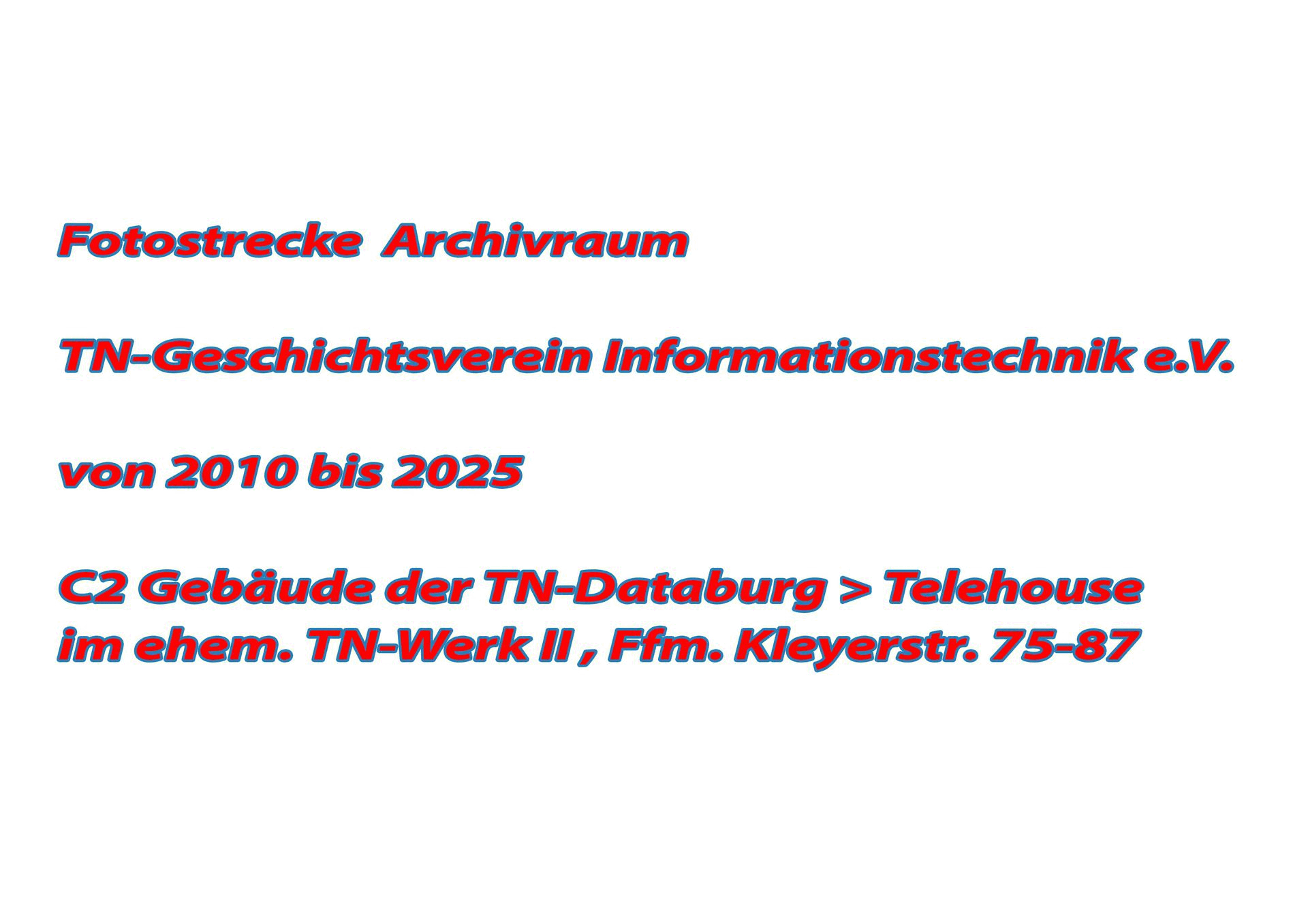 Am 9. April 2025 erfolgte nach 15 Jahren der Auszug aus dem Kellerraum im C2-Gebäude. Wir hatten den Archivraum bei Telehouse gekündigt, da TELENORM.AG die noch vorhandenen Dokumente und Hardware an ihrem Firmensitz erhalten und später dort ausstellen wird. Nun ist der Geschichtsverein Informationstechnik e.V. am Standort Frankfurt Geschichte. Die Vereinsadresse lautet: GVIT.de, c/o TELENORMA.AG, Johannes-Brahm-Str. 4, 72461 Albstadt.