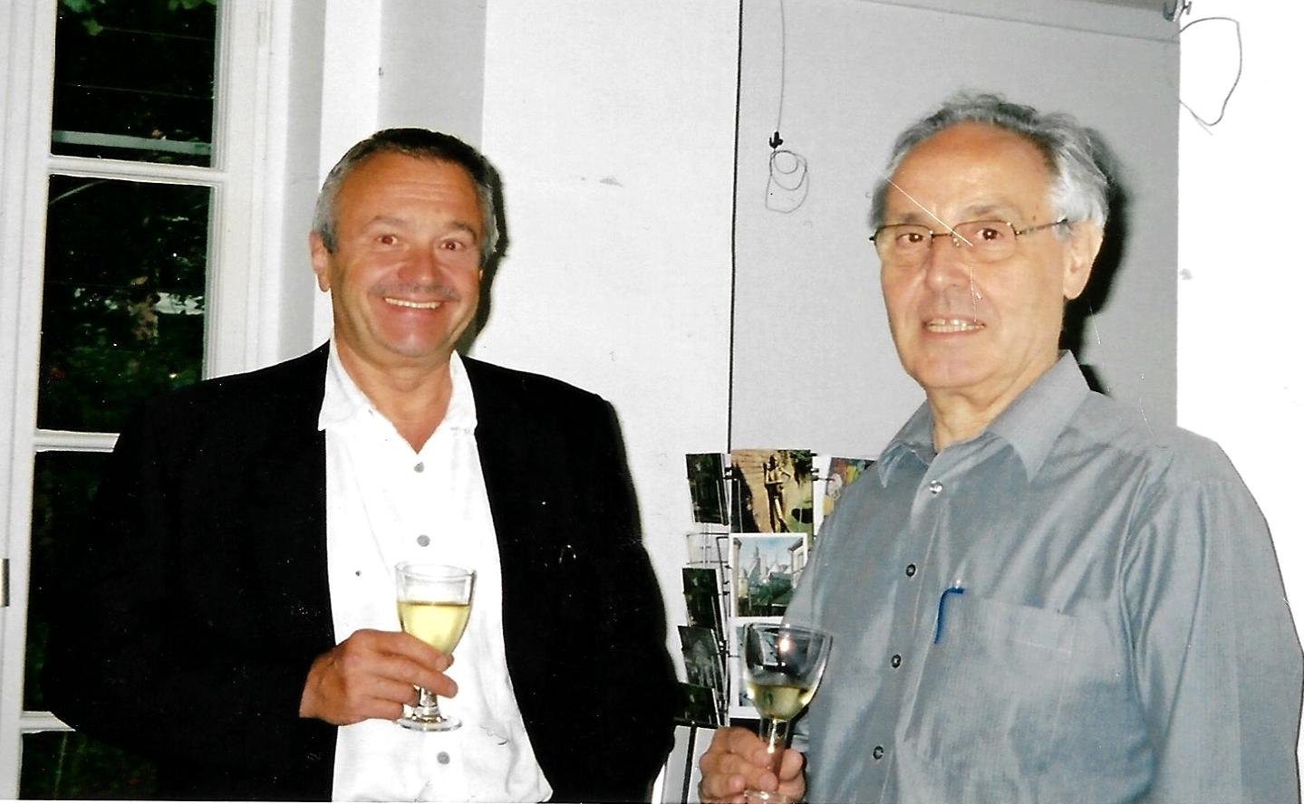 Die Vereinsgründung fand am 6. Februar 2002 in der Residenz des Frankfurter Künstlerclubs, im Nebbiensches Gartenhaus statt. Zwei der Gründungsmitglieder: rechts Klaus Moses, links Franz Hagenmaier.