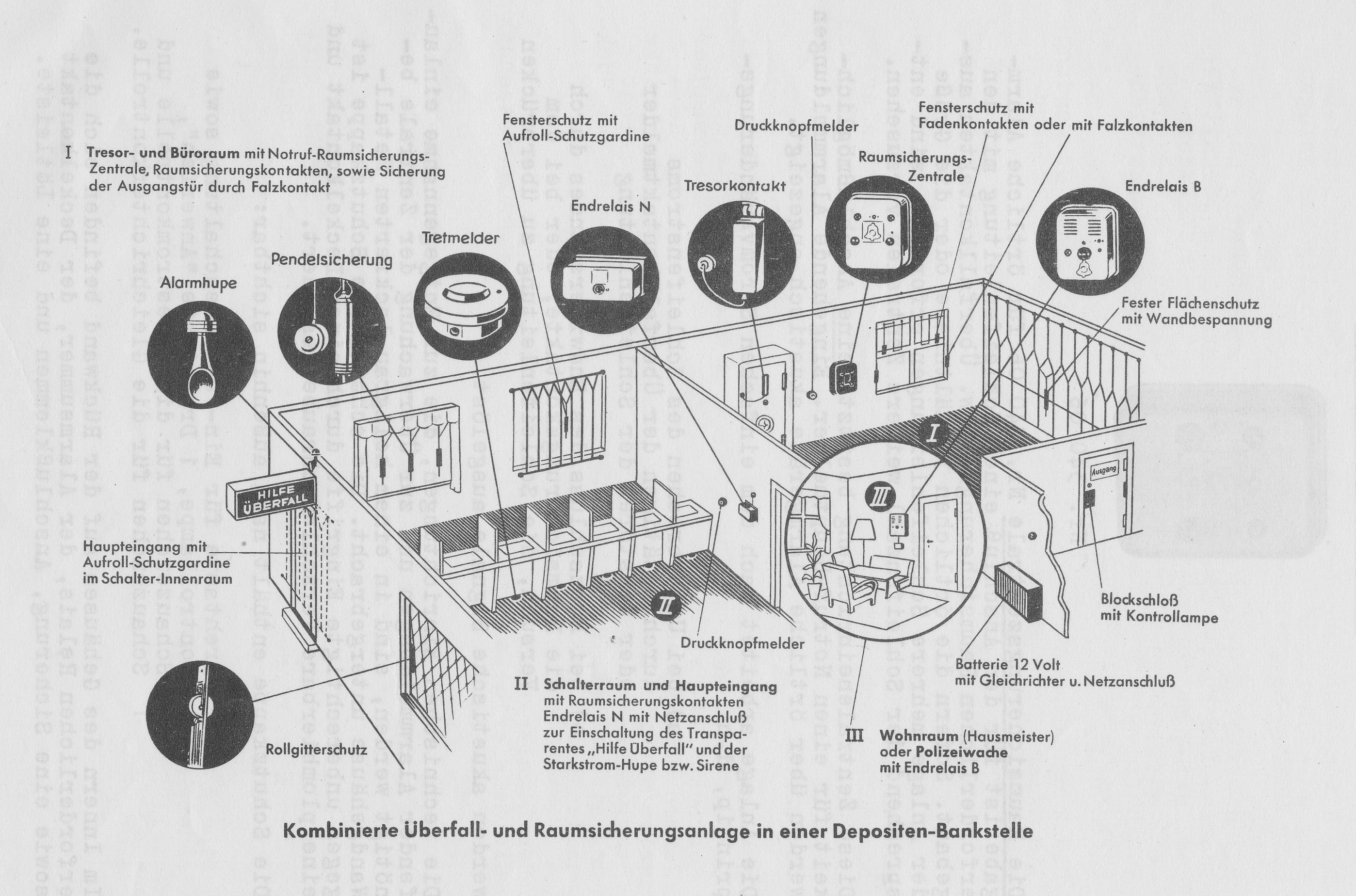 Prinzipieller Aufbau einer Notrufanlage aus 1957