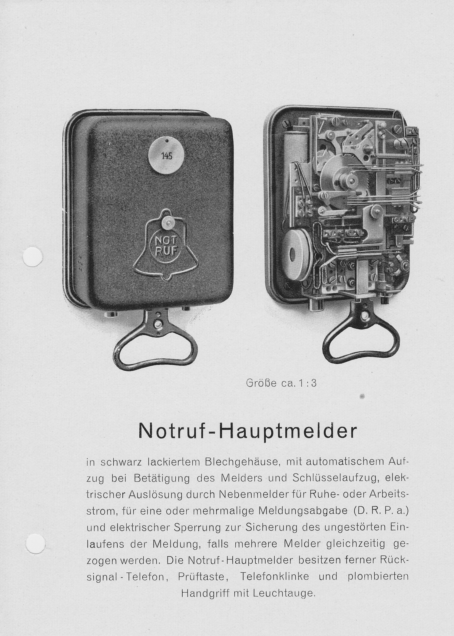 Lieferumfang Notruf-Hauptmelder aus 1968