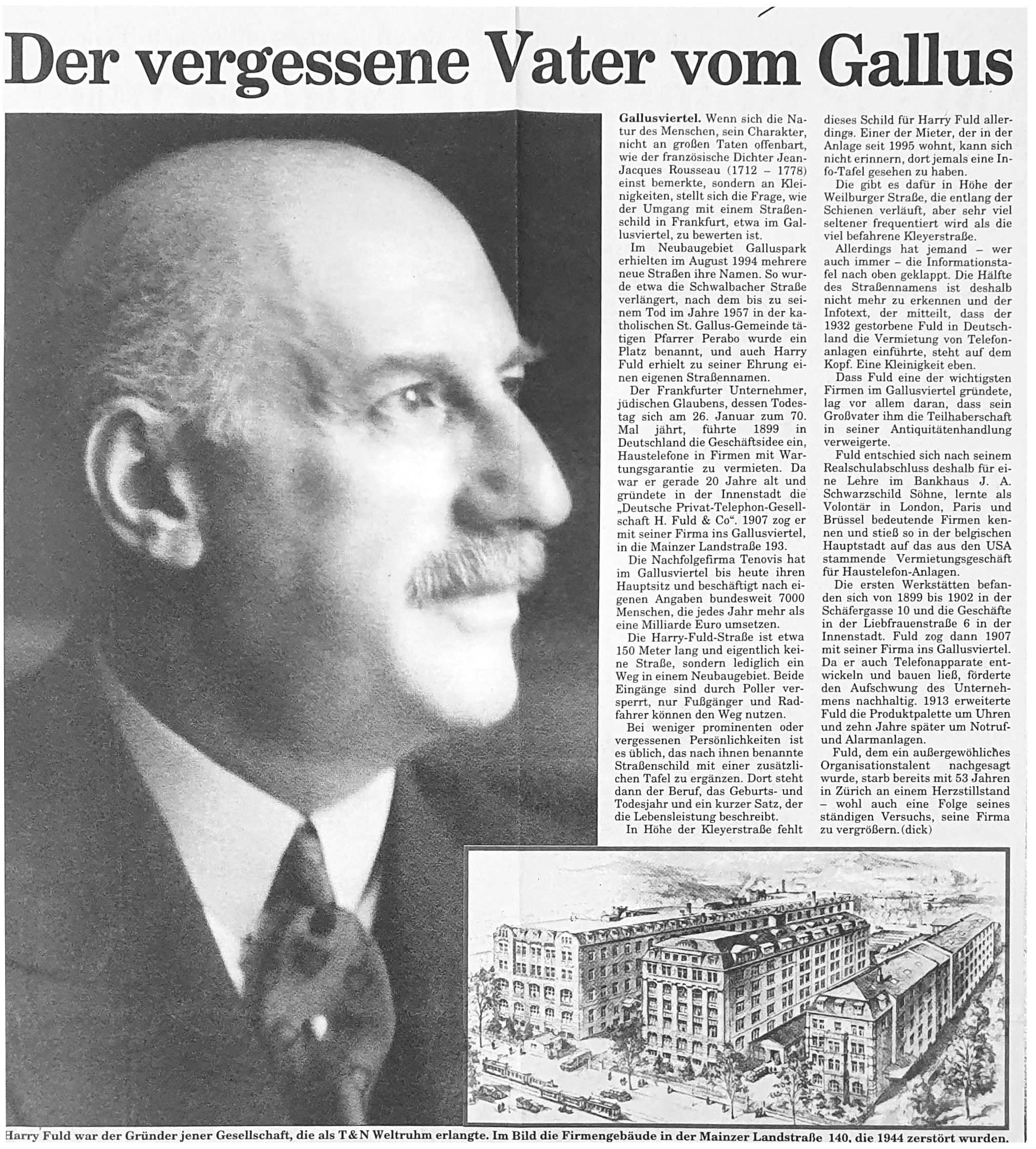 Fuld's TN war Mitte des 20. Jahrhunderts eines der bedeutendsten Unternehmen in der Stadt Frankfurt. Wir machten uns auf die Suche herauszufinden, was 2022 noch davon in der Öffentlichkeit daran erinnert.