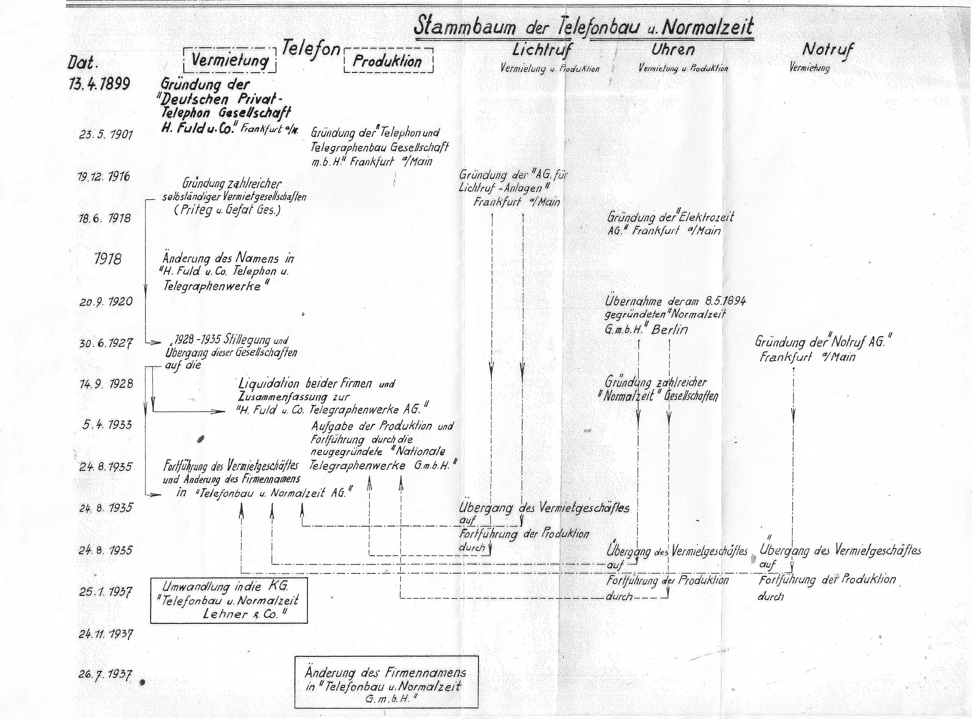Die 1894 von den Kaufmännern Friedrich Mattfeldt, Friedrich Miessler und Anderen gegründete Firma "Normal-Zeit GmbH" wurde am 20.9.1920 vom Uhrmacher Carl Lehner in den Fuld-Konzern übernommen und in der "Elektrozeit AG" weitergeführt
