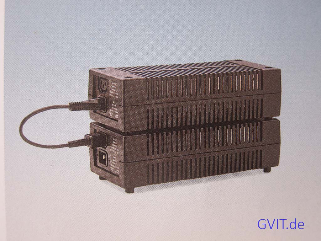 Zur Stromversorgung besitzt das System externe Netzteile. Da sich wegen der Modularität des Gesamtsystems im Voraus niemals festlegen lässt, wieviele Komponenten zu einem Arbeitsplatz zusammengesteckt werden, ein überdimensioniertes Netzteil „für alle Fälle“ aber nicht wünschenswert erschien, wurde auch die Stromversorgung in einzelne Module aufgeteilt. Benötigt der Anwender für einen Arbeitsplatz mehr als ein Netzteilmodul, so wird ein weiteres Modul hinzugefügt (Abb.8).