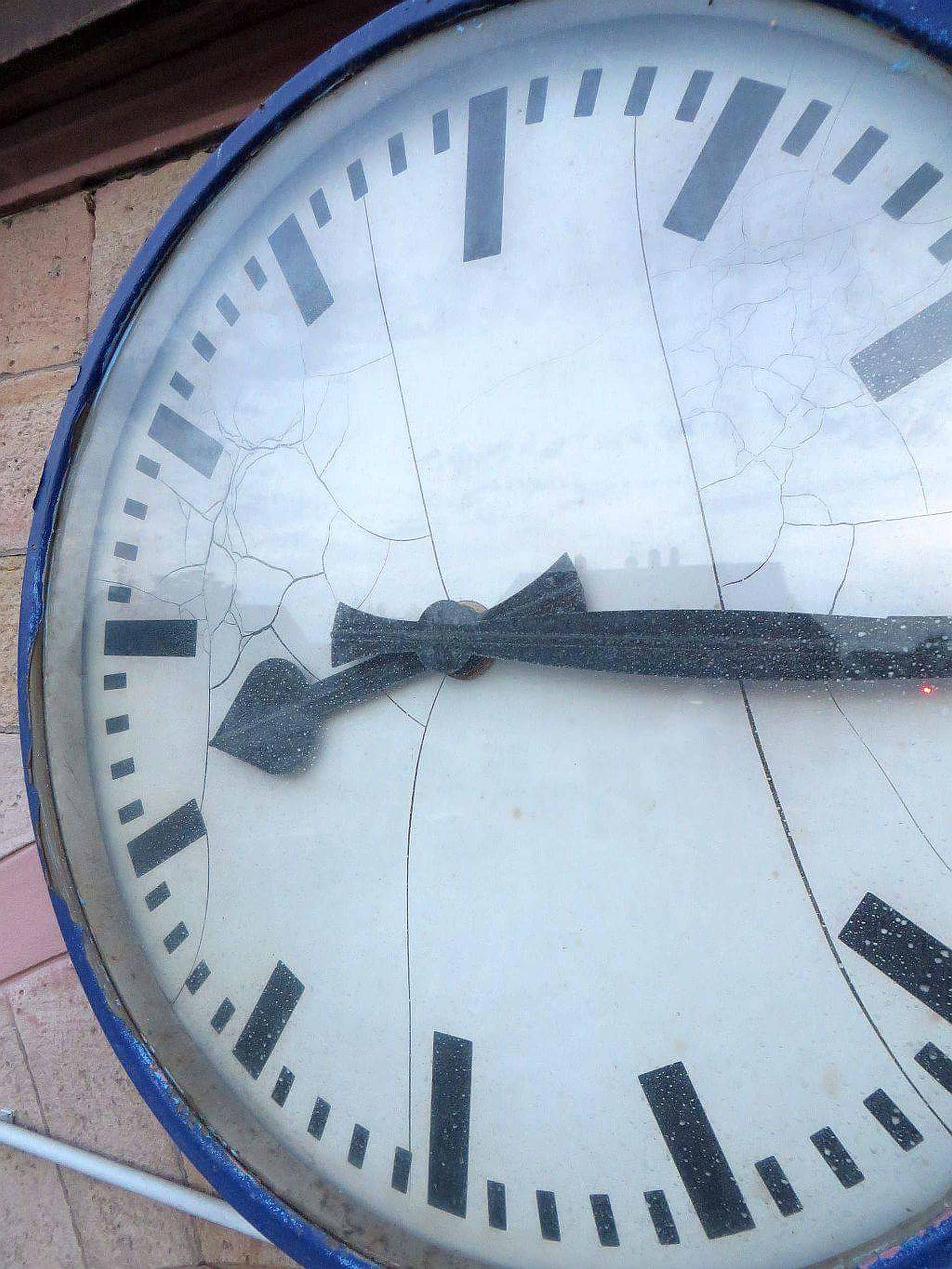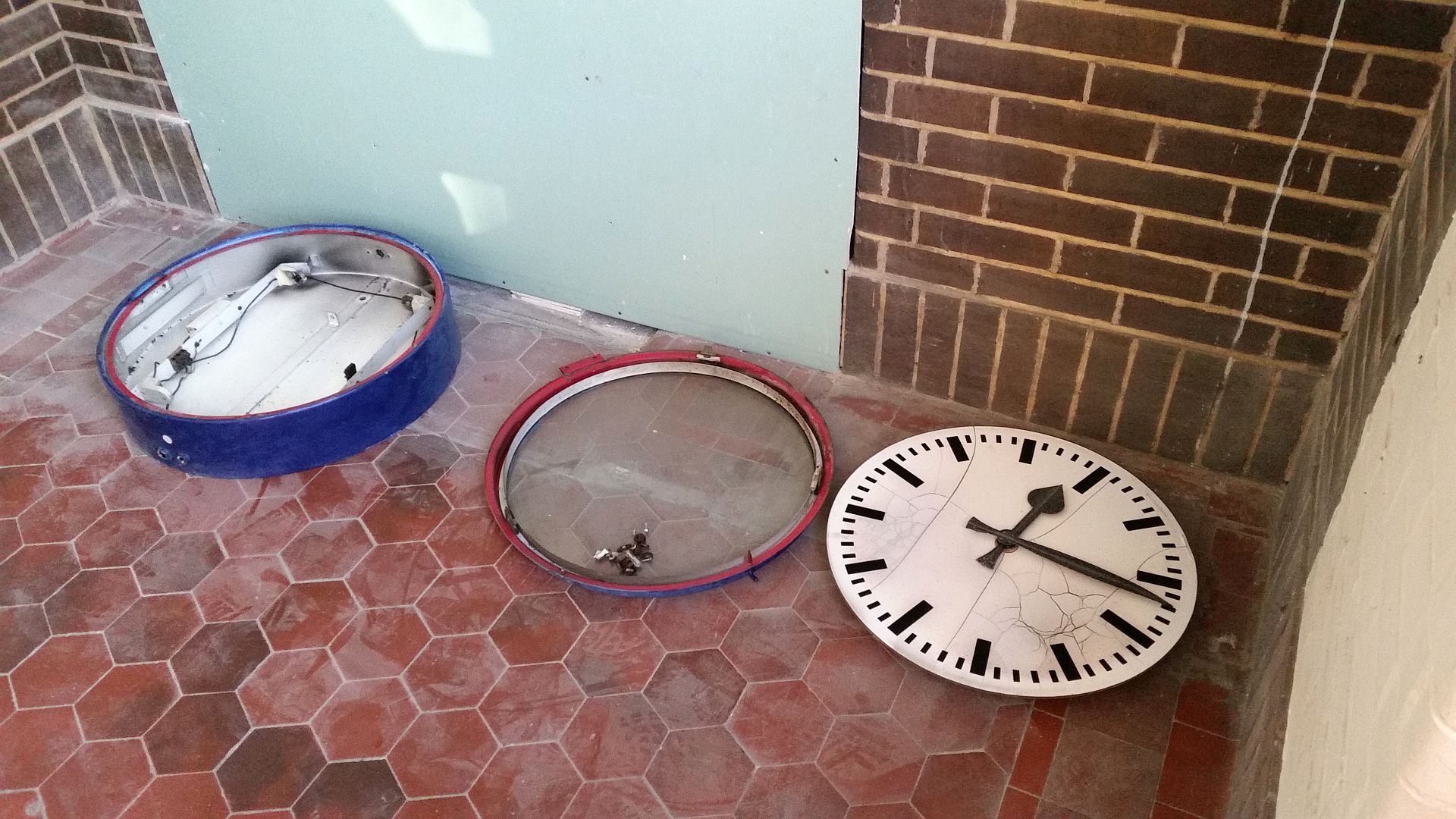 Der DB AG war es zu teuer diese Maßnahme zu stemmen, und ließen die Uhr samt Mast beim Verwerter liegen, dort konnten wir die Uhr mittels Schwertransport bergen. ins nahe gelegene Museum bringen und dort aufarbeiten. Bei der Demontage der Uhr durch die DB wurde wohl das Gewicht der Anlage unterschätzt und ist beim Abbauen abgestürzt. Dies war sichtbar an der krummen Bühne die aufwändig gerichtet werden musste.