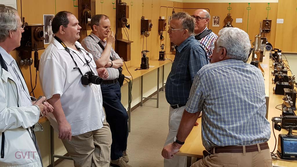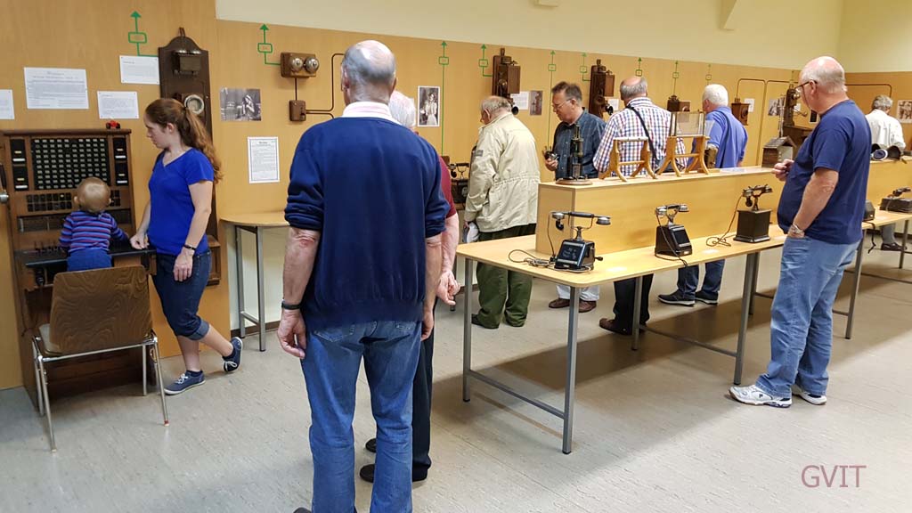 Die in zweiter Generation geführte Sammlung zeigt die Entwicklungs-Geschichte des Telefons mit allen beteiligten Personen von der Telegraphie bis zum vergoldeten TN-T4-Apparat, mit technischen Erläuterungen aller Epochen und funktionsfähigen Exponaten. Über die zeitgenössischen Apparate können an den Wählsystemen vom Besucher Gespräche aufgebaut und der Verbindungsaufbau beobachtet werden. Herr Warth sammelt nicht nur Hardware, (derzeit xy Apparate, xy Anlagen) sondern auch die dazu gehörende Literatur (derzeit xy Bücher). Der älteste Apparat stammt aus 18xy, eine Postkutsche von 18xy und dazu kam unser Gastgeschenk: ein verchromter T-Apparat von TN (Fertigung 19xy). Aus den von unserem Geschichtsverein GVIT dem Deutschen Telefon-Museum zur Verfügung gestellten 490 Mikrofilm-Rollen TN-Stromlaufpläne, Schalt,-Montagezeichnungen, Fertigungsunterlagen und Prüfpläne hat Herr Warth bis heute bereits über 3.300 Fallwähler-Dokumente gescannt und in elektronische Dateien konvertiert, siehe Liste. Vielen Dank dafür und auch an Familie Warth für Ihre Gastfreundschaft und die viele Arbeit für Ihr Lebenswerk herzlichen Dank.