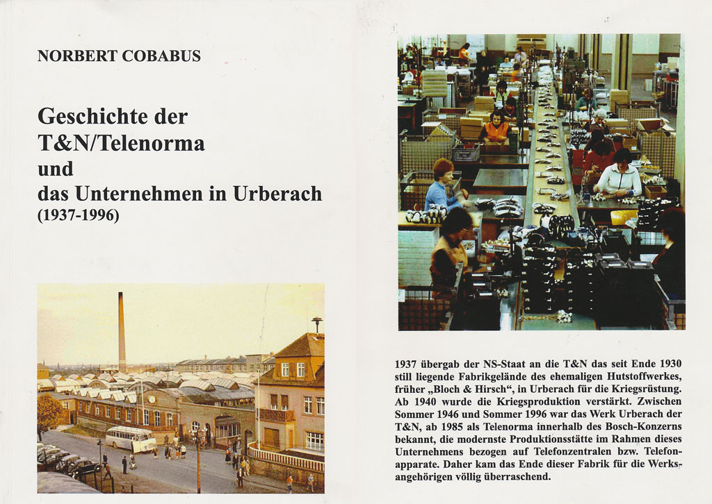 Der ehemalige, leider 2013 verstorbene, Vorsitzende des auch 2013 aufgelösten Verein für ein Forschungs-, Ausstellungs- und Dokumentationszentrum des ehemaligen Fabrikgeländes Ober-Rodener Straße in Rödermark-Urberach e.V. , Norbert Cobabus, hat zur Geschichte der T&N / Telenorma und des Unternehmens in Urberach zwei sehr interessante Bücher geschrieben. Diese haben wir mit freundlicher Genehmigung hier für Sie zum Lesen der Nachwelt gerettet.
