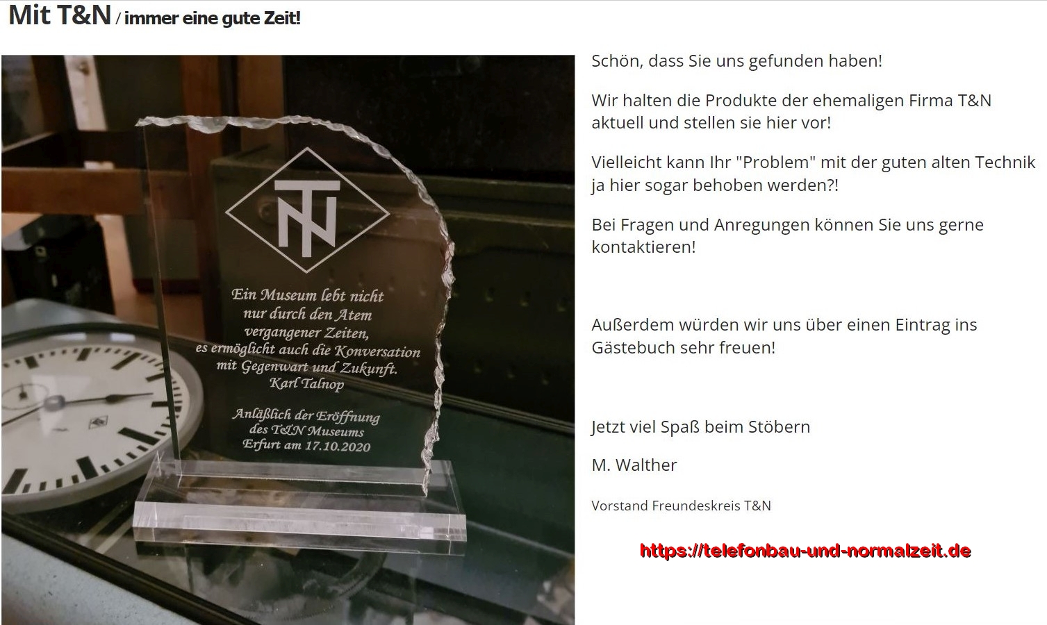 Wir unterstützen uns gegenseitig, und empfehlen den Internetauftritt unseres befreundeten Vereins: https://telefonbau-und-normalzeit.de |