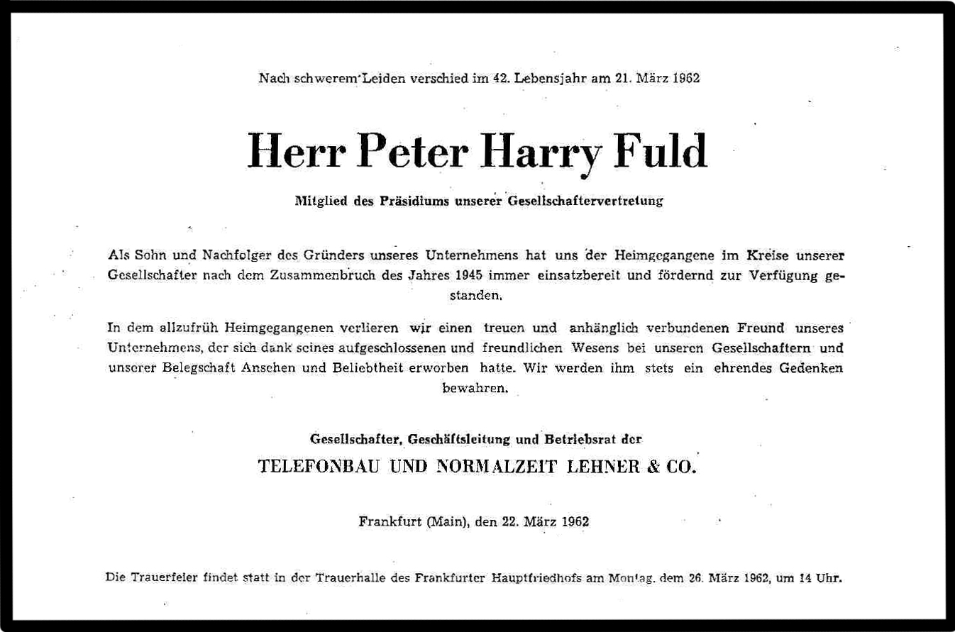 Sohn des Firmengründers Harry, war von bis Geschäftsleitungsmitglied von TN. Als „Halbjude“ wird ihm Vaters Erbe zugesprochen. Darüber gab es nach seinem Tod eine gerichtliche Erbauseinandersetung. Danach wurde aus seinem Vermächtnis die Peter Fuld Stiftung gegründet.