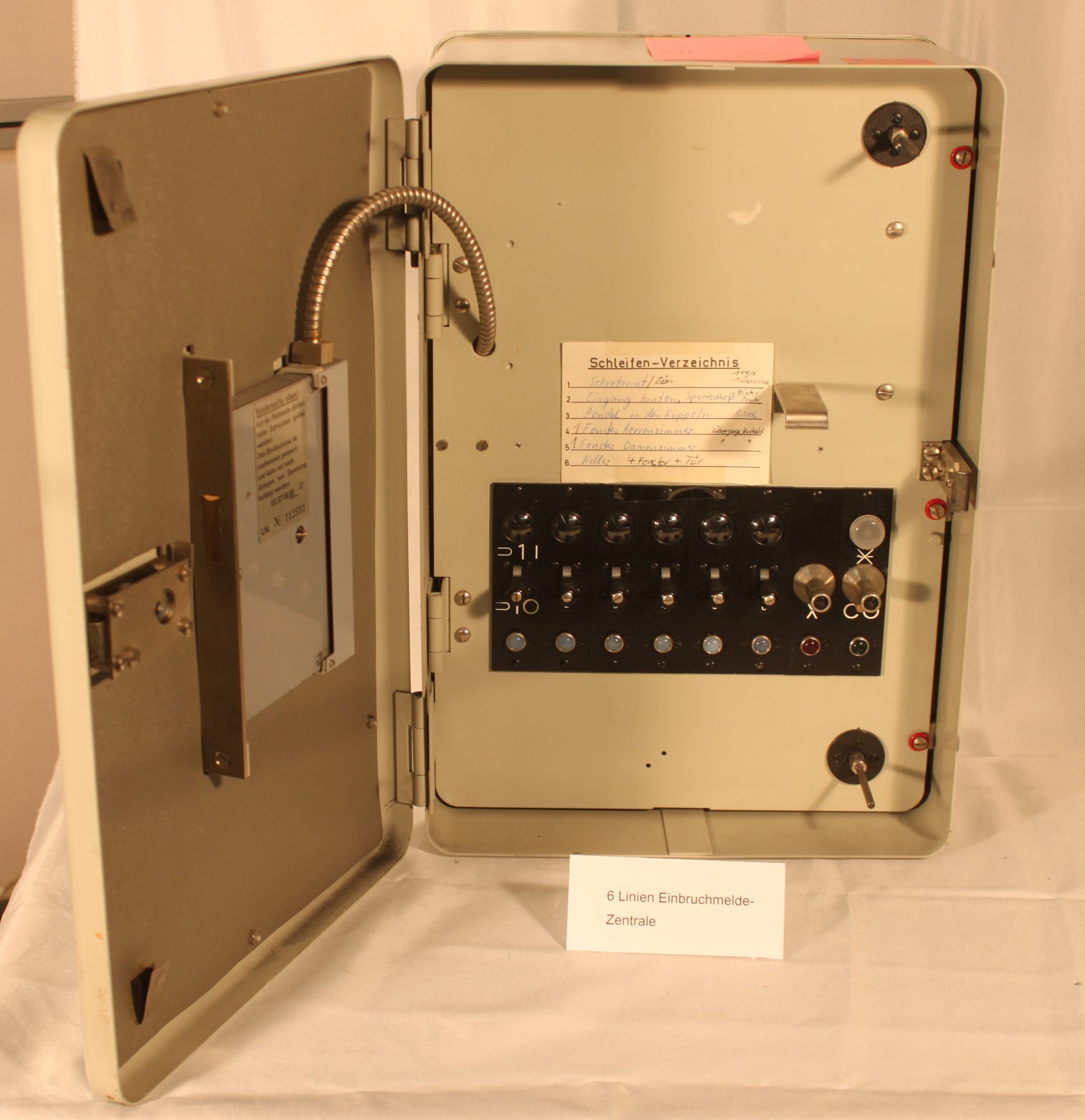 6-Linien-Zentrale bei offener Tür und eingebautem Blockschloss