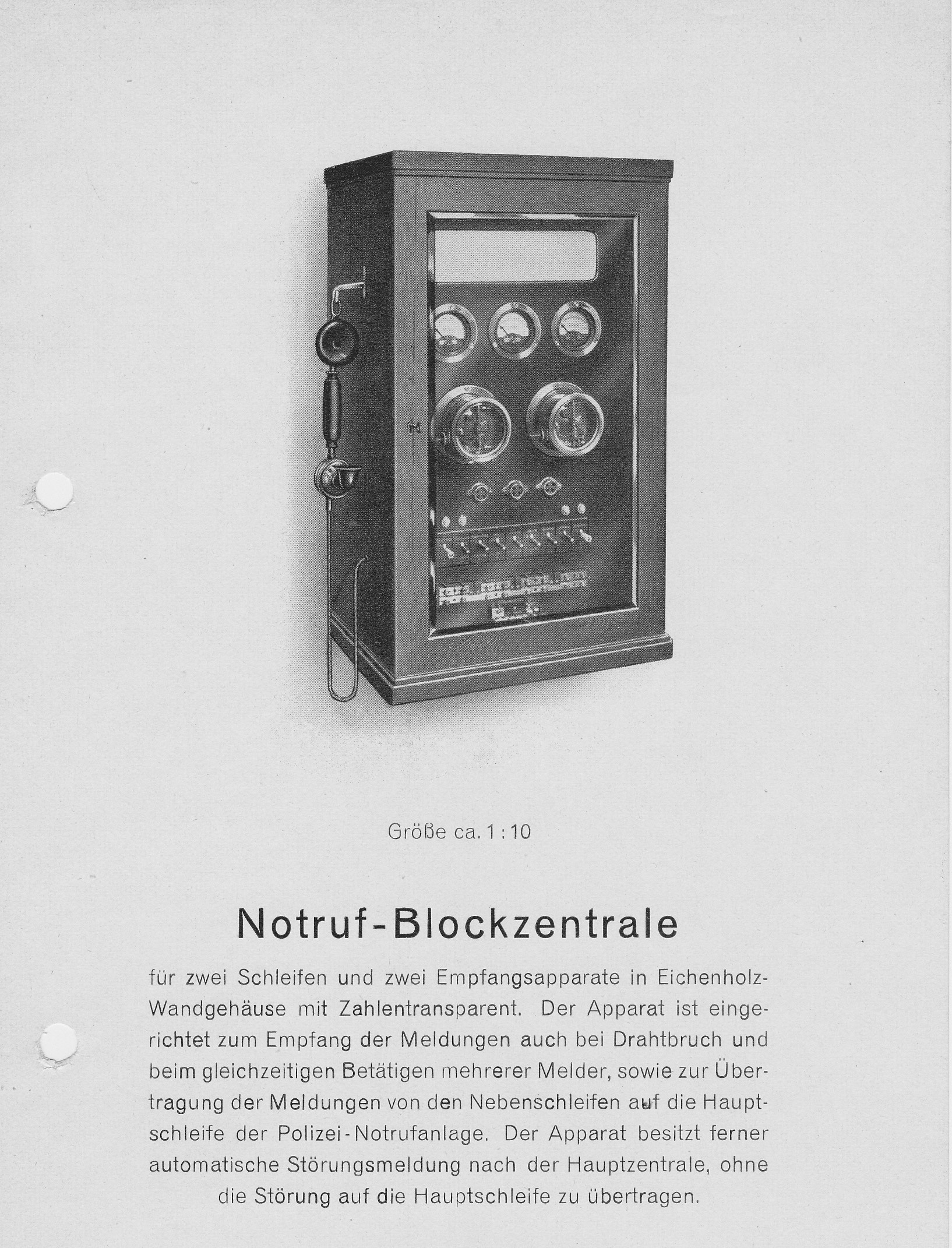 Schaltung und Beschreibung der Notruf-Zentrale 2-45 Schleifen aus 1953
