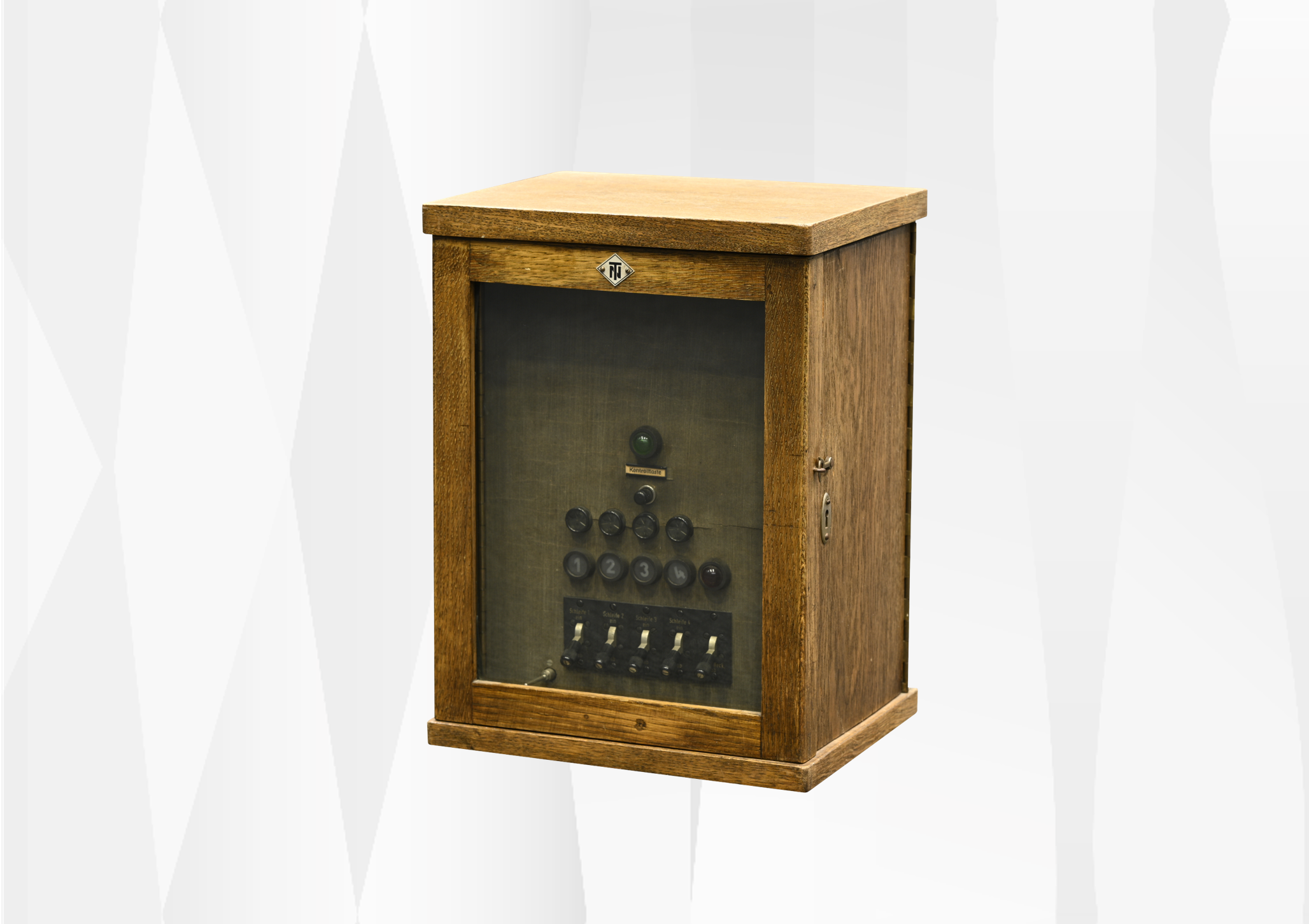 Eine typische und regelkonforme Anordnung von Notruf- und Raumsicherungskontakten in einer Depositenkasse (Bankfiliale) zeigt die nachstehende Prinzipdarstellung aus 1957: